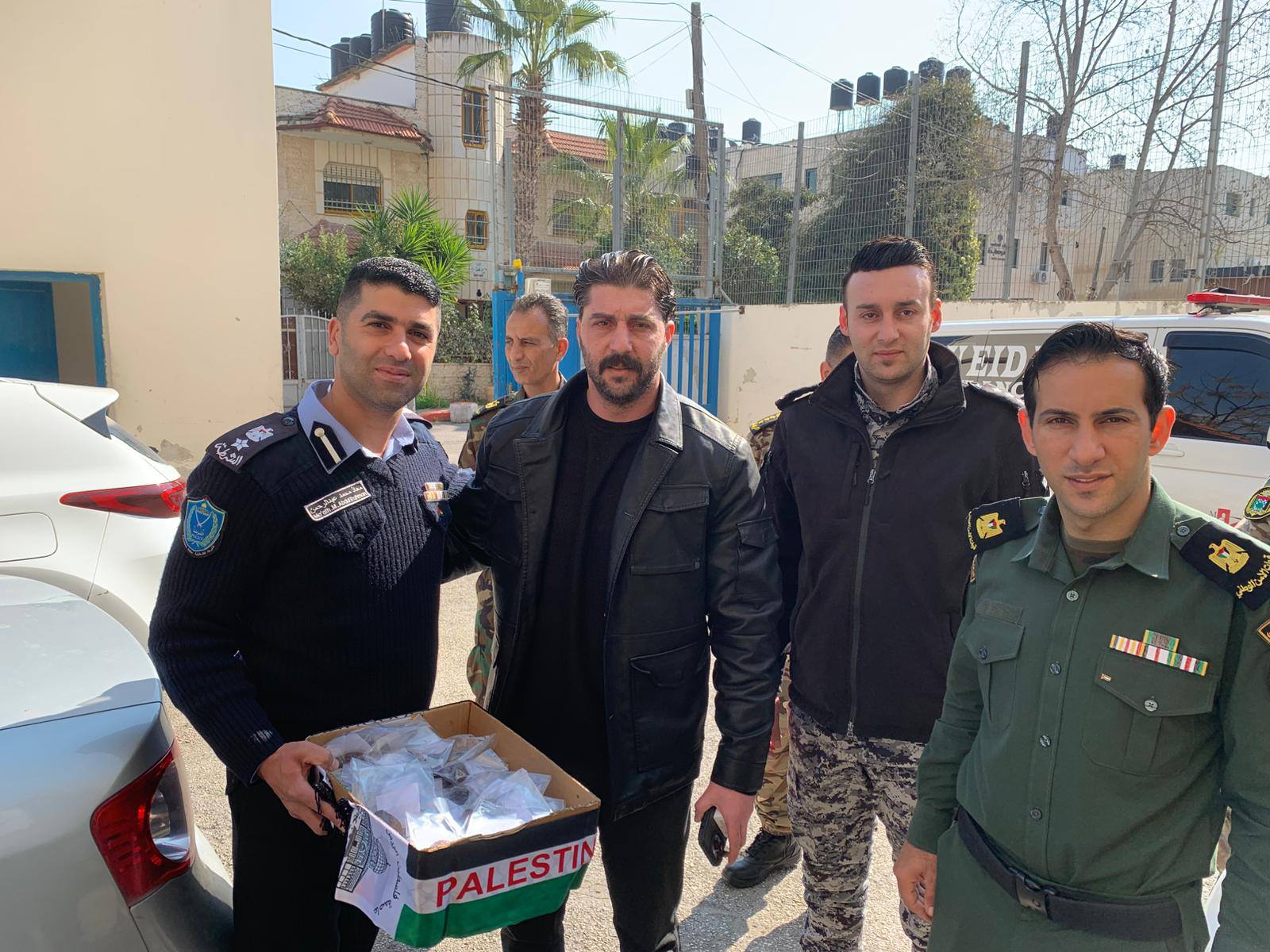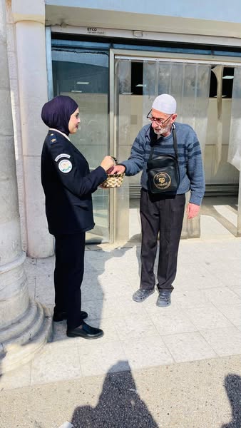 Ramallah - 1/27/2025 The Customs Police, in partnership with the security establishment in the northern governorates, distributed sweets and dates to citizens, drivers and travelers today, Monday, on the occasion of Isra and Mi'raj.