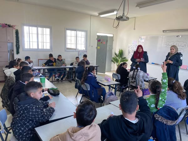 Ramallah - 2/16/2025 The Customs Officer, in cooperation with the Political and National Guidance Authority, gave an awareness lecture to students of Yasouf Mixed Elementary School, today, Sunday, in Salfit Governorate, from which (30) male and female students benefited.