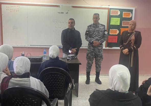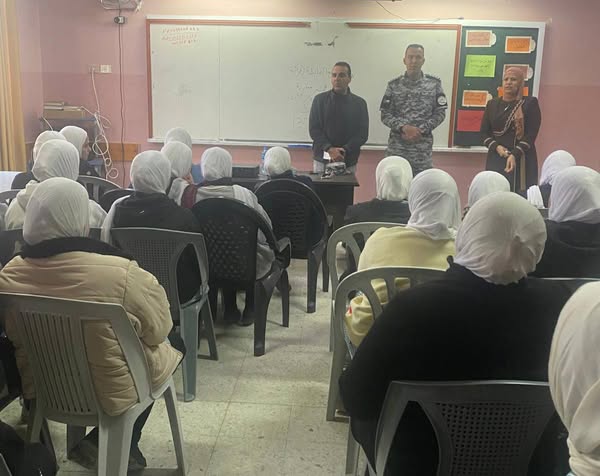 Ramallah - 2/18/2025 The Customs Police Department in the Jenin Directorate, in cooperation with the Customs Police Center/Mithloun, gave an awareness lecture to students of Mithloun Girls Secondary School, today, Tuesday, in Jenin Governorate, from which (60) students benefited.