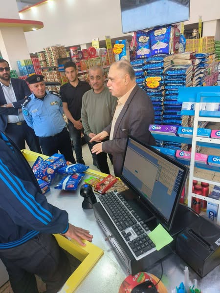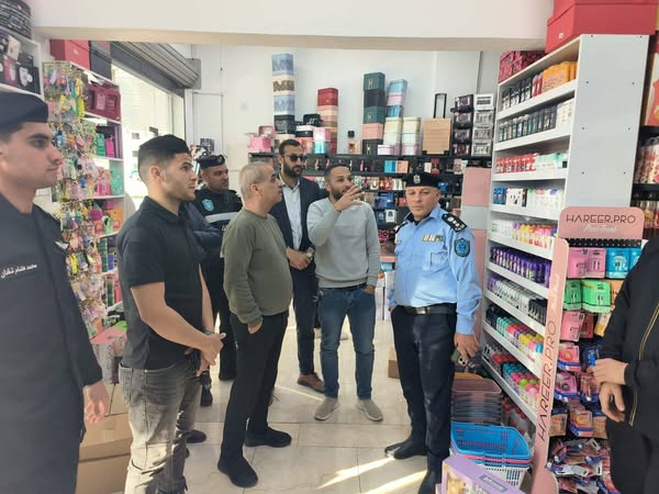 Ramallah_March 24, 2025 - The Customs Police, represented by the Director of the Customs Police Directorate in Tulkarm Governorate, Brigadier General Raed Al-Tirawi, organized an inspection tour of markets and shops in the town of Attil in Tulkarm Governorate on Monday. The tour was attended by Attil Police Director Colonel Sharif Abu Younis and Attil Mayor Dr. Hussam Abu Madi.