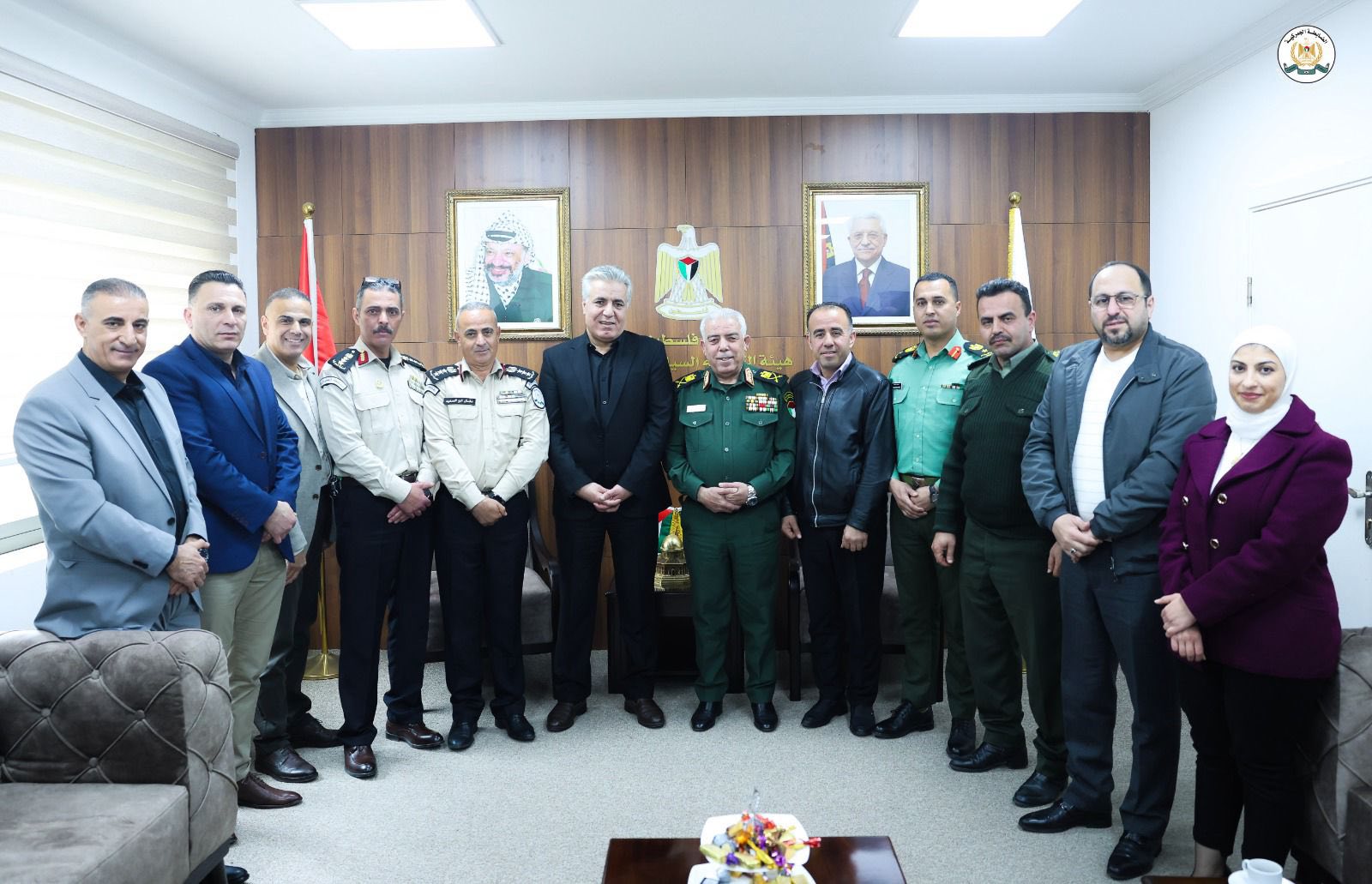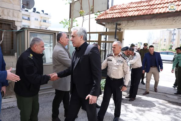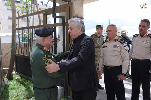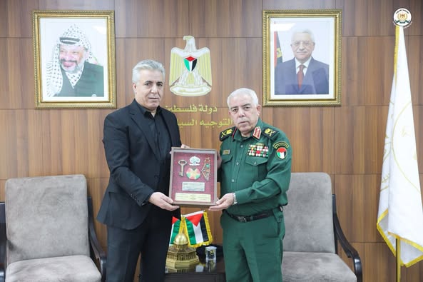 Ramallah - April 13, 2025 - The Commander of the Customs Police Force, Major General Iyad Barakat, met with the General Political Commissioner, Major General Anwar Rajab, today, Sunday, at the headquarters of the Political and National Guidance Authority in Ramallah.