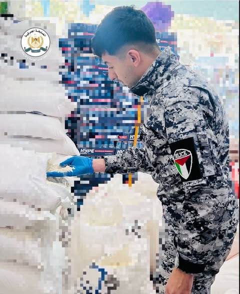 Ramallah - April 27, 2025. Based on accurate information, the Customs Police, with support from the joint force (Preventive Security, National Security, and Police), and in cooperation with the competent authority at the Ministry of National Economy, seized approximately 2.5 tons of flour today, Sunday, inside a warehouse in the Hebron Governorate. The flour was found to be spoiled and infested with insects, rendering it unfit for human consumption.