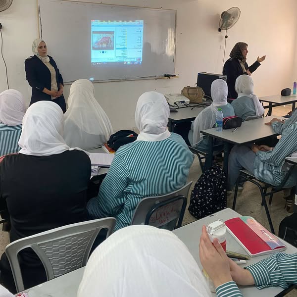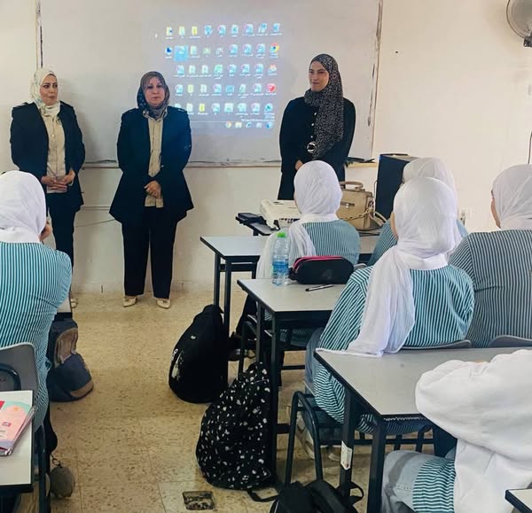 Ramallah - April 29, 2025 - The Customs Officer, in cooperation with the Political and National Guidance Authority, gave an awareness lecture to students of Kafr al-Dik Girls Secondary School today, Tuesday, in Salfit Governorate. (60) students benefited from the lecture.