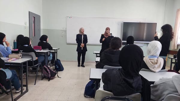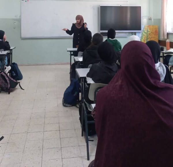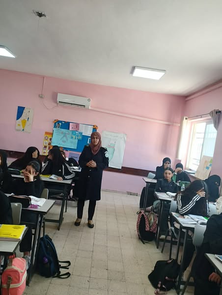 Ramallah - 5/7/2025 The Customs Officer, in cooperation with the security establishment, gave an awareness lecture to students at Aziz Shaheen Girls Secondary School today, Wednesday, in Ramallah and Al-Bireh Governorate. (100) students benefited from the lecture.