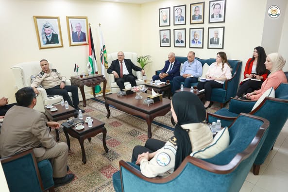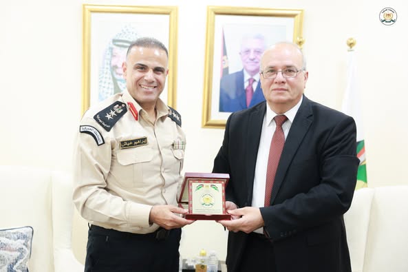 Ramallah - 12/5/2025. The Director of the Public Relations and Media Department at the Customs Police Department, Colonel Ibrahim Ayyash, and his accompanying delegation met with the President of Al-Quds Open University, Prof. Ibrahim Al-Shaer, today, Monday, at the university's headquarters in Ramallah, to expand joint cooperation between the two sides in the area of awareness.