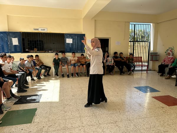 Ramallah - August 24, 2025. The Customs Officers delivered an awareness lecture to students of the "Beit Ur al-Tahta Boys' School" Summer Camp in the Ramallah and al-Bireh Governorate, benefiting (60) male and female students.