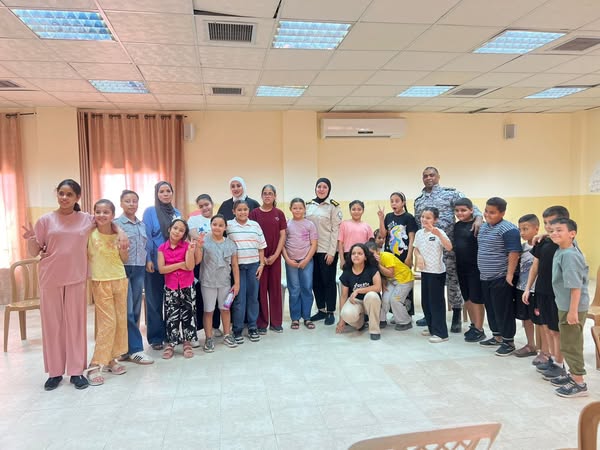 Ramallah - August 25, 2025. The Customs Police Officer, in cooperation with the Political and National Guidance, delivered an awareness lecture to students at the Jericho Municipality's Child Center Summer Camp on Monday in Jericho. (40) male and female students benefited from the lecture.