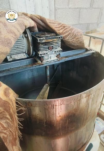 وعلى الفور، تحركت قوة مشتركة من الضابطة الجمركية والأمن الوقائي، وبحضور جهات الاختصاص في وزارات الاقتصاد الوطني والصناعة والصحة إلى الموقع، حيث تبين وجود كميات من المواد المصنعة وقيد التصنيع.