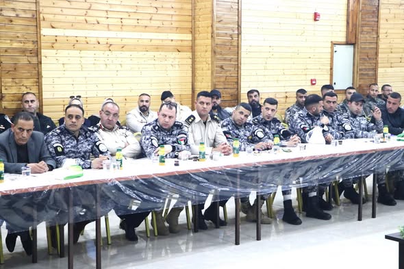 Ramallah - April 13, 2026 The Director of the Customs Police in Hebron Governorate, Lieutenant Colonel Nidal Al-Saifi, and officers from the directorate participated in welcoming Minister of Interior, Major General Ziad Hab Al-Reeh, today, Monday, at the Governorate headquarters. The Governor of Hebron Governorate, Mr. Khaled Doudin, and directors of the security institutions in the governorate were also present.