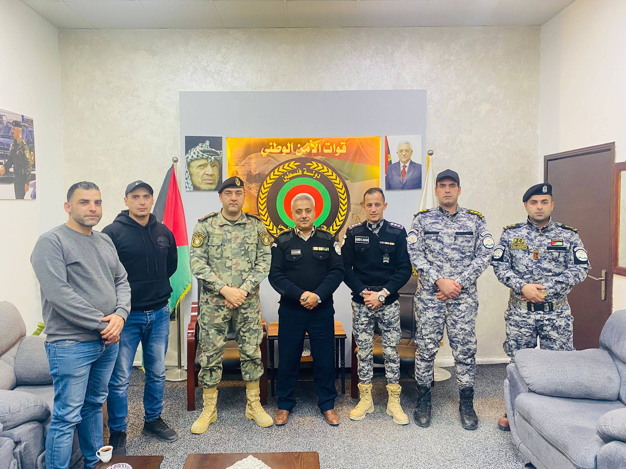 As part of strengthening security coordination, Colonel Katana received the Director of Preventive Security, Brigadier General Maher Abu Halawa, and his accompanying delegation at his office, where they discussed mechanisms for developing cooperation and joint coordination in combating economic crimes and strengthening the rule of law.