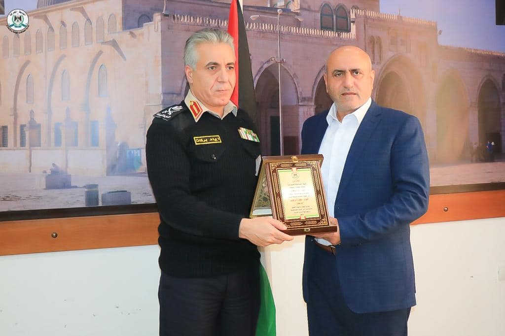 وفي نهاية اللقاء قدم اللواء/ بركات درع تكريمي للواء/ الرجوب؛ تقديراً لدوره ودعمه لعمل جهاز الضابطة الجمركية.