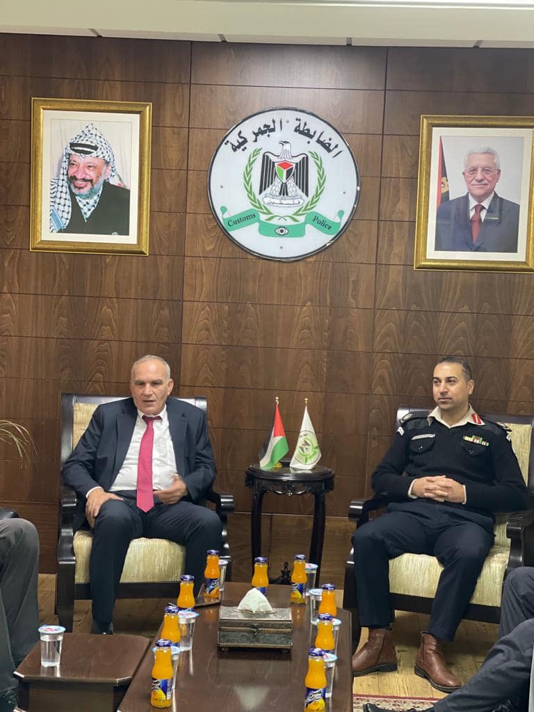 Ramallah _ 17/1/2023 The Director of the Customs Police in Jenin Governorate, Major Ismail Al-Mahdi, received today, Tuesday, in his office, the Minister of Communications and Information Technology, Isaac Sidr.