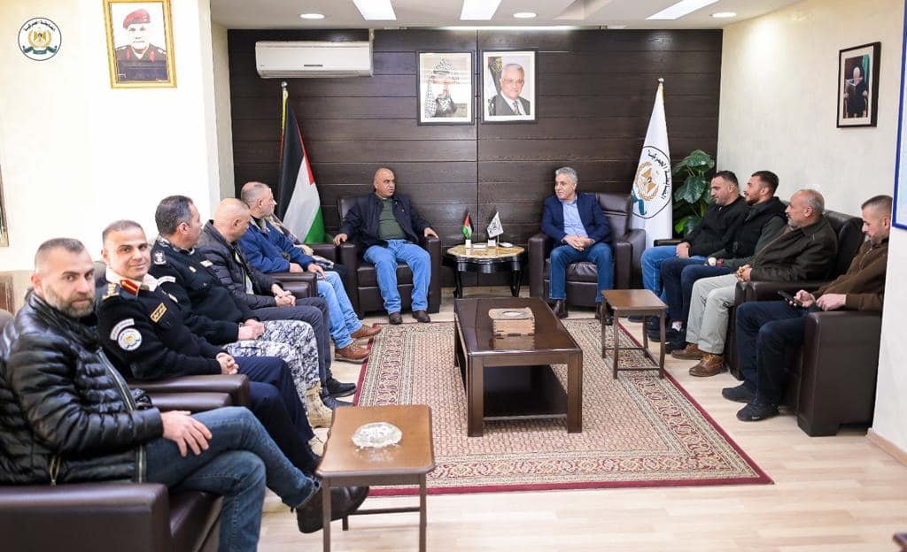 Ramallah _ 1/24/2023 The Commander of the Customs Police Service, Major General Iyad Barakat, received today, Tuesday, in his office in Ramallah, the Secretary of the Fatah Movement for the Ramallah and Al-Bireh Region, Mr. Muwafaq Sahwil, and the members of the region.