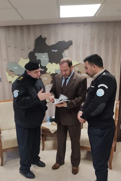 Ramallah _ 1/2/2023 The customs police force, represented by the Director of the Salfit Directorate, Lieutenant Colonel/ Ayman Abu Shakra, handed over the annual report of the customs police's achievements and work for the year "2022" to the governor of Salfit Governorate, Major General / Dr. Abdullah Kamil, today, Wednesday, in the governorate house.