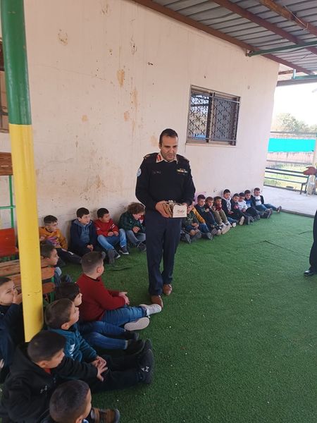 Ramallah _ 28/2/2023 The customs police apparatus, in cooperation with the political and national guidance, presented today, Tuesday, an educational and educational activity for the children of Deir Ghazala Kindergarten, in Jenin Governorate, from which (45) children benefited.