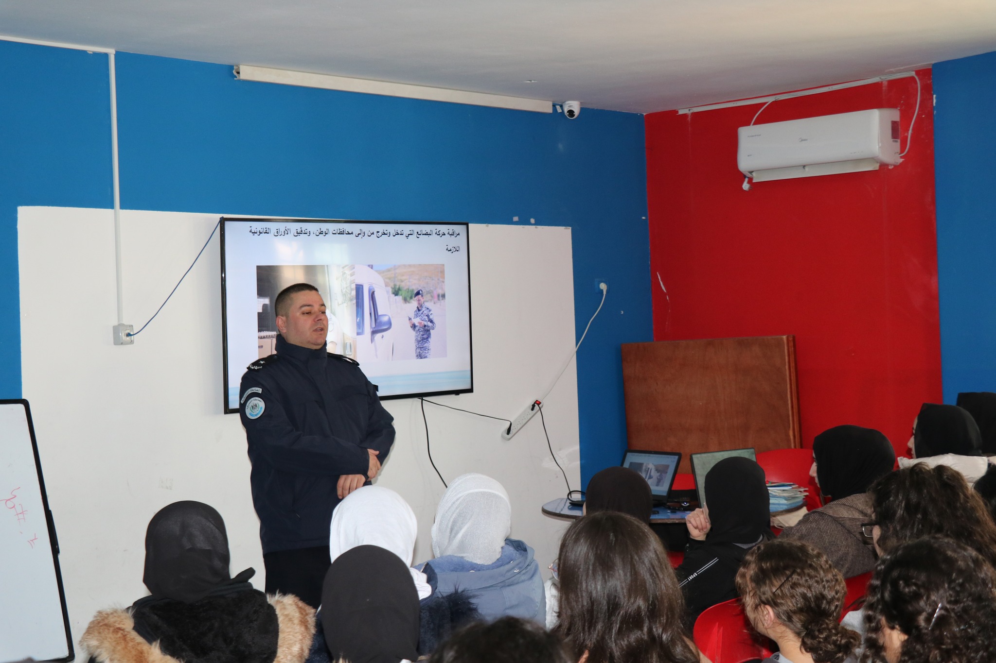 وقد هدفت المحاضرة إلى تعريفهن بدور الجهاز ومهامه الموكلة له في مكافحة البضائع الفاسدة وغير القانونية وبضائع المستوطنات والتهريب بكافة أشكاله، فضلاً عن تعريفهن بكيفية التواصل مع الجهاز للإبلاغ عن البضائع غير القانونية؛ من خلال الاتصال على الرقم المجاني (132) أو عبر الصفحة الرسمية للجهاز على موقع التواصل الاجتماعي (الفيسبوك).