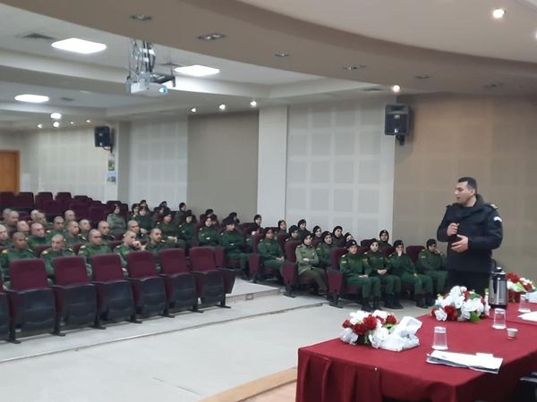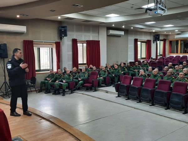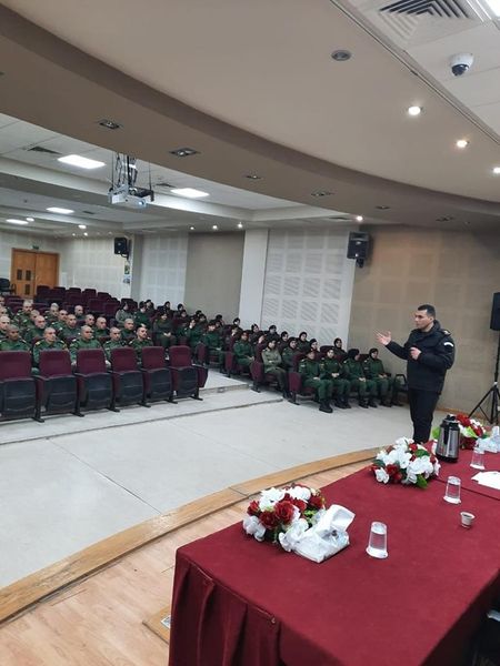 Ramallah _ 3/21/2023 The customs police force, represented by the Deputy Director of Planning and Training Major/ Badr Al-Maghrabi, presented two central lectures about its tasks for students of the Diploma in Customs Sciences, and the third-year Bachelor’s degree from Al-Istiqlal University, today, Tuesday, in Jericho. (320) male and female students benefited from it. .