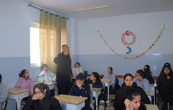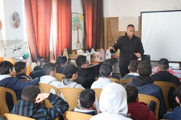 Ramallah_ 3/22/2023 Today, Wednesday, the Customs and Police Department presented educational lectures to students of Al-Khatib Elementary School in Ramallah and Al-Bireh, benefiting (100) male and female students.