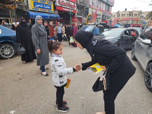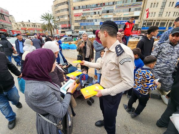 Ramallah _ 3/22/2023 The customs police, in cooperation with the police, the gender unit in the security establishment, and the Hearts Encapsulated in Good volunteer team, today, Wednesday, in the governorates of Nablus and Bethlehem, distributed sweets and Qurans to citizens, drivers, and passersby; To congratulate them on the occasion of the holy month of Ramadan