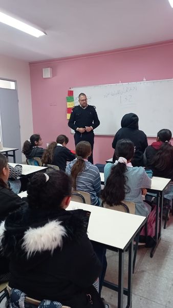 Ramallah _ 3/29/2023 The customs police apparatus, in cooperation with the political and national guidance, presented an awareness lecture to the students of Ain Misbah High Basic Mixed School in Ramallah and Al-Bireh Governorate, today, Wednesday, from which (40) students benefited, as part of the control program in spreading awareness customs.