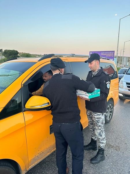 Ramallah _ 4/4/2023 The customs police distributed, today, Tuesday, in several governorates, before the sunset call to prayer, water and dates to citizens and drivers for those who did not have time to reach their destination before breakfast time, and this was accompanied by verbal educational messages to drivers urging them to abide by the rules. traffic.
