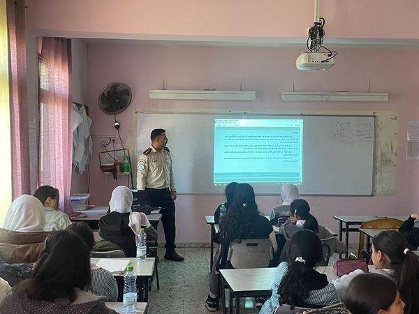 Ramallah _ 4/26/2023 The customs police, in cooperation with the political and national guidance, presented an awareness lecture for the students of the Basic Spanish Girls School in the Ramallah and Al-Bireh Governorate, today, Wednesday, from which (48) students benefited. Within the control program in spreading customs awareness.