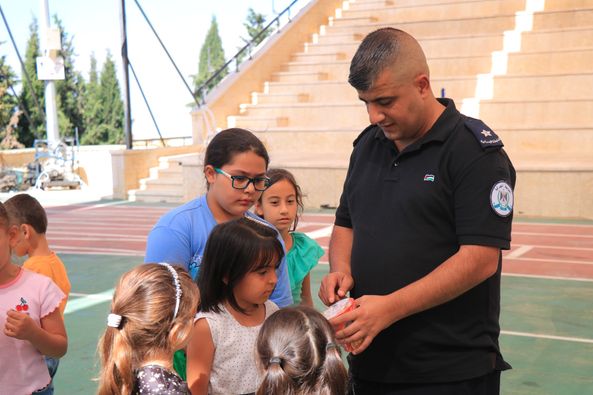 Ramallah _ 10/8/2023 The customs police presented an awareness lecture for the summer camp "Palestine in Our Eyes", affiliated with Birzeit University, today, Thursday, in Ramallah and Al-Bireh Governorate, benefiting (50) participants.