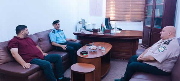 Ramallah - 9/19/2023 The Director of Customs Police in Jericho Governorate and the Northern Jordan Valley, Lieutenant Colonel Ayman Abu Shakra, received today, Tuesday, in his office, the Director of Police, Brigadier General Ibrahim Tomar. To discuss mechanisms for joint action in the interest of the nation and the citizen.