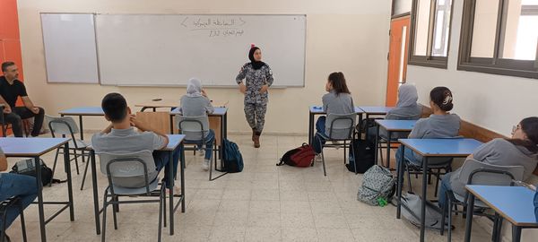 Ramallah - 9/20/2023 The Customs Police gave an awareness lecture to the students of the Terra Santa School in Jericho Governorate today, Wednesday, from which (40) students benefited. Within the control program to spread customs awareness.