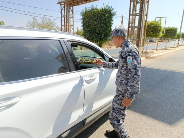 Ramallah - 9/27/2023 The customs police force in the various governorates of the country, in cooperation with the security institution and the Palestinian Ministry of Endowments and Religious Affairs, today, Wednesday, distributed sweets to citizens, drivers, and passers-by. On the occasion of the anniversary of the Prophet’s birthday.