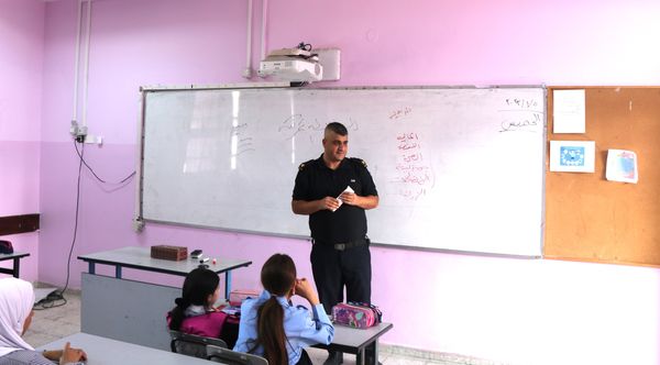 Ramallah - 10/5/2023 The Customs Police gave an awareness lecture to the students of Al Karama Girls’ Basic Higher School, in Ramallah and Al-Bireh Governorate, today, Thursday, from which (70) students benefited. Within the control program to spread customs awareness.
