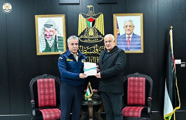 Ramallah - 1/30/2024 The Commander of the Customs Police Service, Major General Iyad Barakat, delivered the annual report on the achievements of the Customs Police and its work for the year “2023” to His Excellency the Minister of the Interior, Major General Ziad Hab Al-Rih, today, Tuesday, at the Ministry of the Interior in Ramallah, in the presence of a number of department directors. Central device.