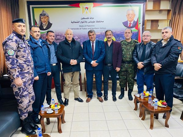 Ramallah - 2/13/2024 The Director of Customs Police in Tubas Governorate and the Northern Jordan Valley, Lieutenant Colonel Amjad Barahma, participated in receiving His Excellency the Minister of the Interior, Major General Ziad Hab Al-Rih, today, Tuesday, at the Governorate House, in the presence of the Acting Governor of Tubas Governorate and the Northern Jordan Valley, Brother Ahmed Al-Asaad. The commander of the region, Colonel Munir Abu Kishk, the secretary of the Fatah movement, Brother Mahmoud Sawafta, and the directors of the security establishment in the governorate.