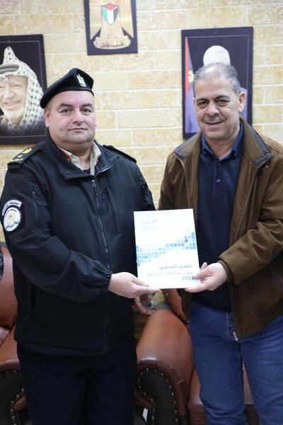 Ramallah - 2/13/2024 The Customs Police Service, represented by the Director of the Tulkarm Directorate, Lieutenant Colonel Ayman Abu Shakra, delivered the annual report on the achievements of the Customs Police and its work for the year “2023” to the Acting Governor of Tulkarm Governorate, Brother Mustafa Taqatqa, today, Tuesday, at the Governorate House.