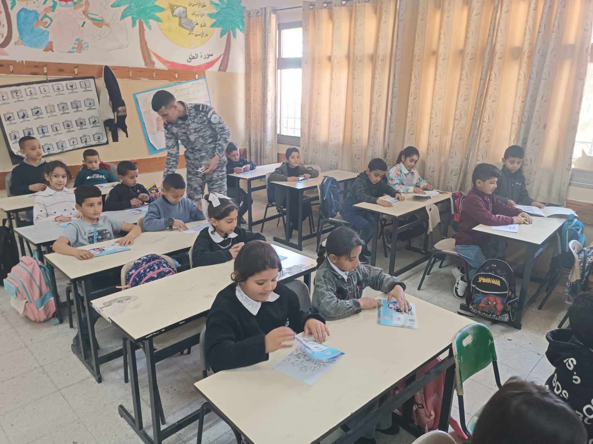Ramallah - 3/13/2024 Today, Wednesday, the Customs Police Service organized an educational and awareness day for the students of Al-Zahir Baibars Mixed Basic School in the Hebron Governorate, from which (100) students, both male and female, benefited.