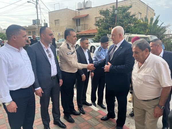 Ramallah - 4/29/2024 The Customs Police Service, represented by Colonel Wael Al-Anati, participated in receiving His Excellency the Minister of the Interior, Major General Ziad Hab Al-Rih, today, Monday, at the Governorate House in Bethlehem, in the presence of His Excellency the Governor of Bethlehem, Major General Muhammad Taha, and the directors of the security establishment in Governorate.