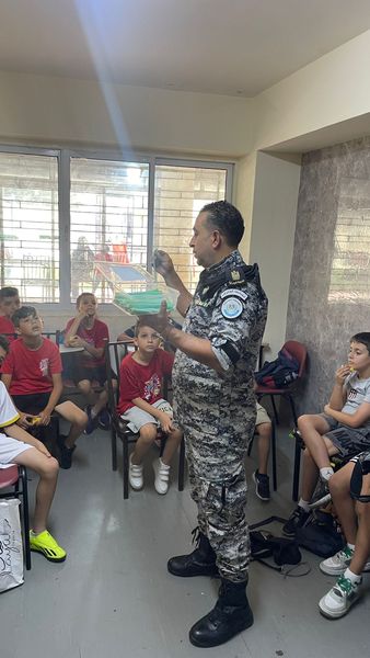 Ramallah - 7/8/2024 The Customs Police Service, in cooperation with the Political and National Guidance, presented an awareness lecture for the students of the “Talaween” summer camp, today, Monday, in the Ramallah and Al-Bireh Governorate, from which (40) male and female students benefited.