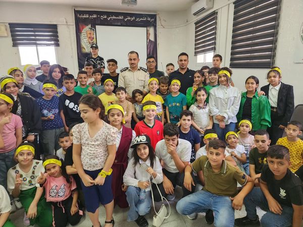 Ramallah - 7/21/2024 The Customs Police gave an awareness lecture to the students of the “Cubs and Flowers” summer camp, affiliated with the Fatah movement, today, Sunday, in Qalqilya Governorate, from which (60) male and female students benefited.