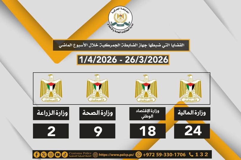 رام الله - 30/3/2026 نفذ جهاز الضابطة الجمركية، وبالتعاون مع لجنة السلامة العامة، جولة ميدانية تفقدية على الأسواق اليوم الإثنين في بلدة بديا غرب محافظة سلفيت.