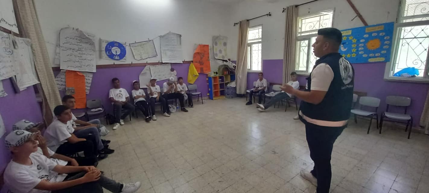 رام الله _ 17/7/2023 قدم جهاز الضابطة الجمركية، محاضرة توعوية لطلائع مخيم صيفي "وجود، وارتقاء"، اليوم الإثنين في محافظة طولكرم، استفاد منها (120) مشاركًا.
