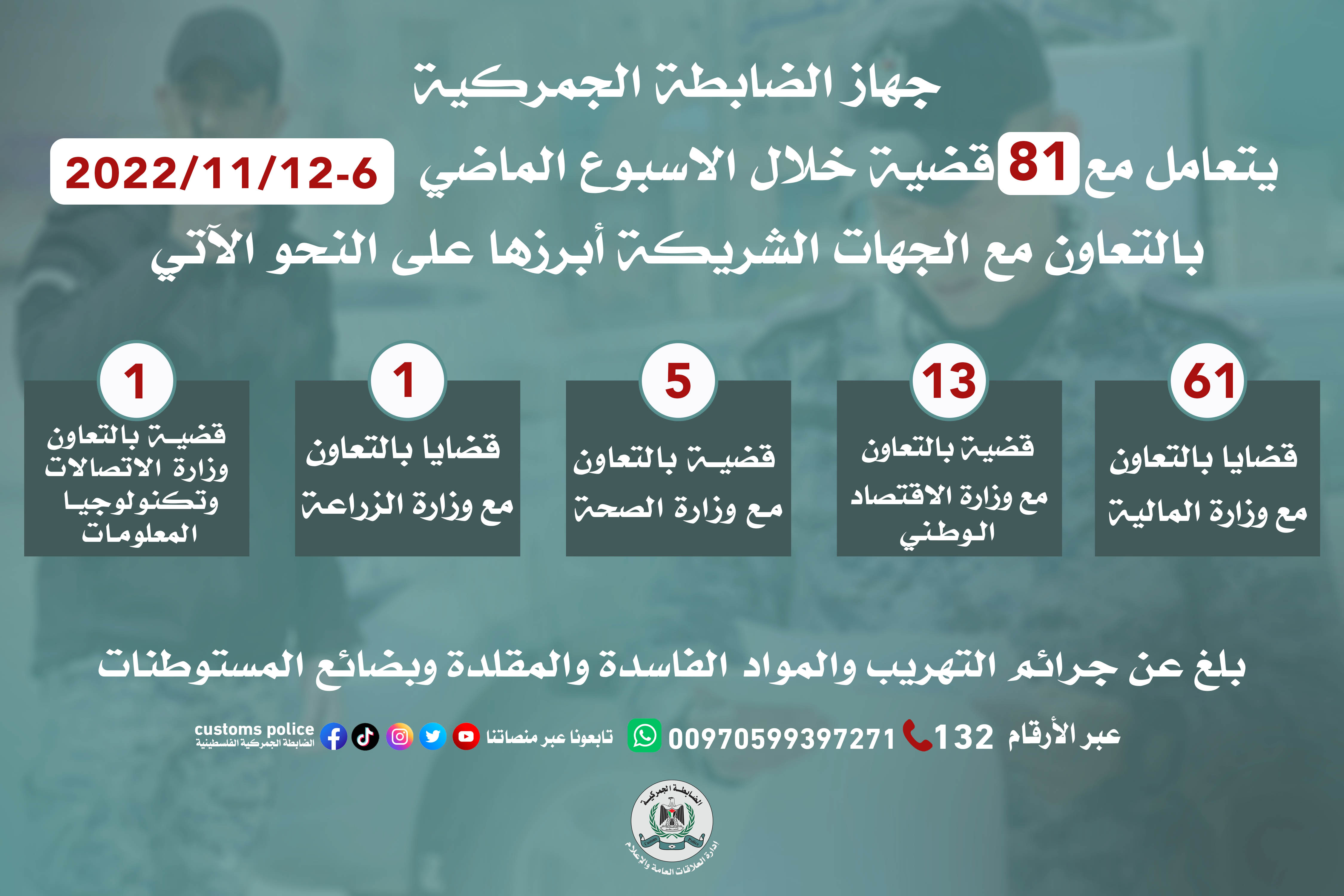 - 61 قضية بالتعاون مع وزارة المالية بهدف تحسين ايرادات الدولة ورفد الخزينة بالأموال تم خلالها ضبط: