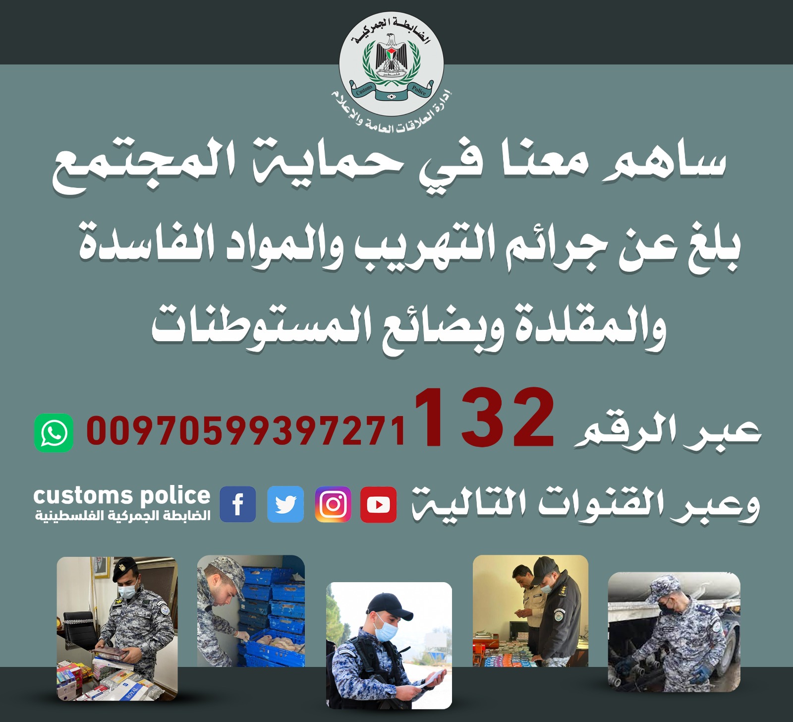 رام الله _ 26/10/2022 قدم جهاز الضابطة الجمركية، محاضرة توعوية لطلبة كلية تراسنطا، بمحافظة بيت لحم، اليوم الأربعاء، استفاد منها (100) طالب وطالبة. ضمن برنامج الضابطة في نشر التوعية الجمركية.