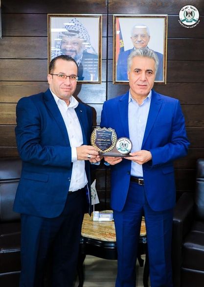 رام الله _ 16/10/2022 كرم قائد جهاز الضابطة الجمركية اللواء/ إياد بركات، اليوم الأحد في مقر الجهاز برام الله، ضابطين من جهاز الضابطة الجمركية، هما: مقدم/ علي الحج محمد، ومقدم/ محمد ابو خالد.