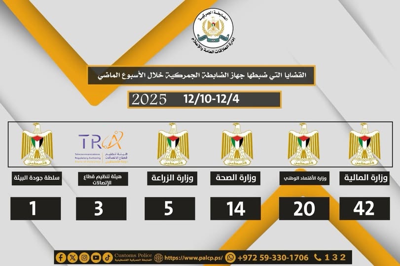 رام الله - 9/12/2025 قدم جهاز الضابطة الجمركية، محاضرة توعوية لطلاب مدرسة المنجد الخاصة المختلطة، اليوم الثلاثاء في محافظة سلفيت، استفاد منها (40) طالب.