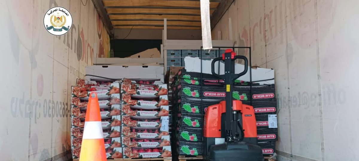 رام الله - 25/8/2025 ضبط جهاز الضابطة الجمركية خلال عمله على إحدى الحواجز، اليوم الإثنين في أريحا، شاحنة قادمة من إسرائيل محملة بحوالي 5 طن وربع فواكه بدون أوراق قانونية.