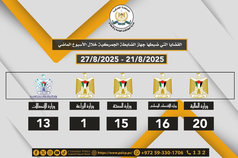 رام الله_28/8/2025 قدم جهاز الضابطة الجمركية، اليوم الخميس، محاضرة توعوية لطلبة مخيم صيفي "زهرات القدس" في محافظة قلقلية، استفاد منها (60) طالبة،