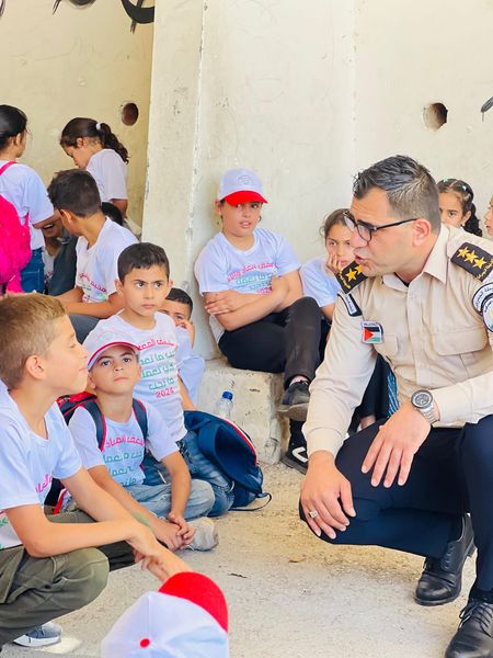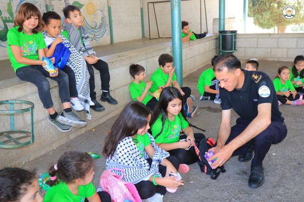 The customs police gives an awareness lecture to the students of the Funfit and Little Genius summer camp in Ramallah and Al-Bireh