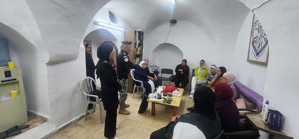 The customs police gives an awareness lecture to the women of the women’s center in the eastern district of Jenin
