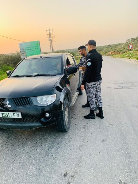 The customs police distributes water and dates to citizens and drivers in Salfit