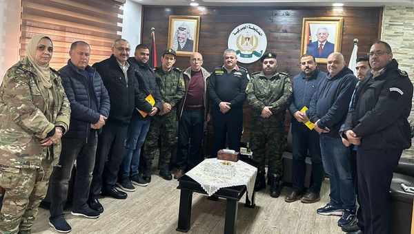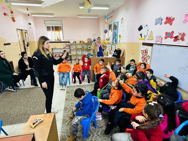 The customs police provides an entertaining and awareness-raising activity for the children of the Ibdaa Foundation kindergarten in Bethlehem Governorate.